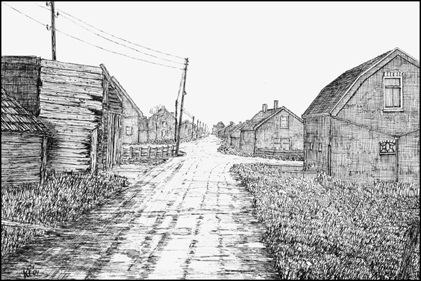 er tot aan de ontruiming heeft gewoond. Aan de rechterkant van de Graspolderdijk