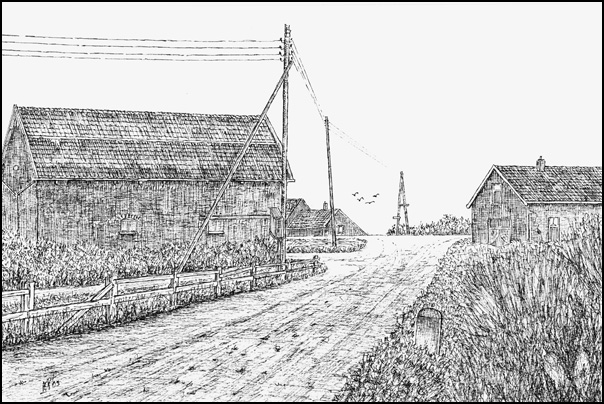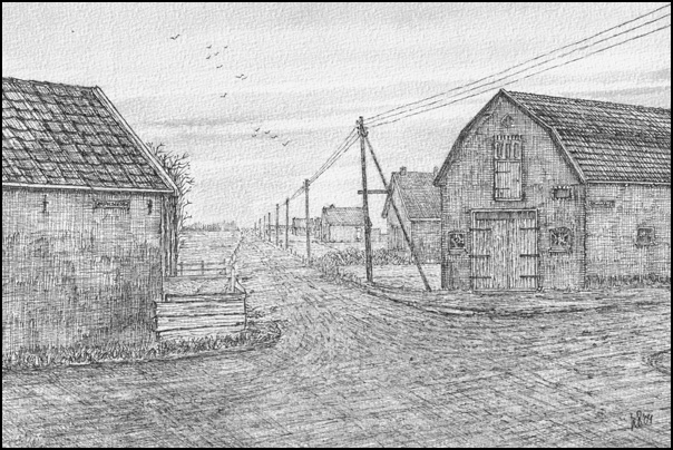 Staaldiepsedijk richting Brielse Heuvel. Geheel rechts de schuur van Jaap Pols.