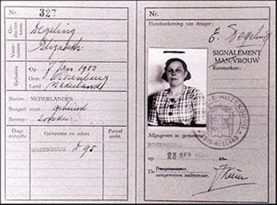 Identiteitsbewijs van Elizabeth van de Berg-Degeling.